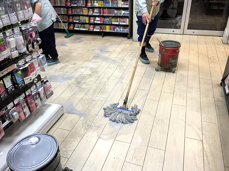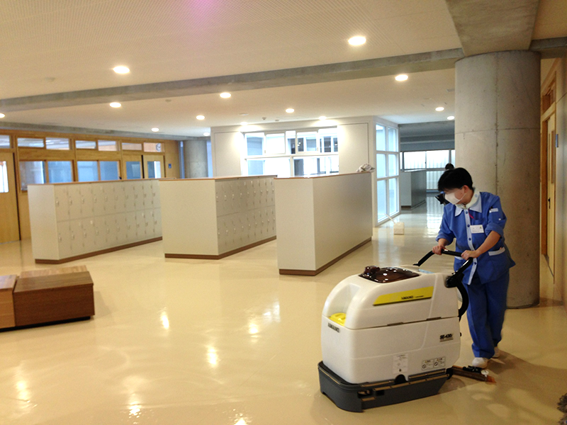- 日常清掃では除去出来ない汚れ、保てなくなった光沢・美観を機械による洗剤洗浄等を行うことにより回復・復元させる為に行う清掃作業となります。