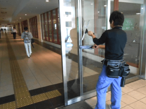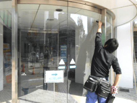 - 高所や特殊なところのガラスだけではなく、エントランスなどの通常のガラス清掃も行っています。