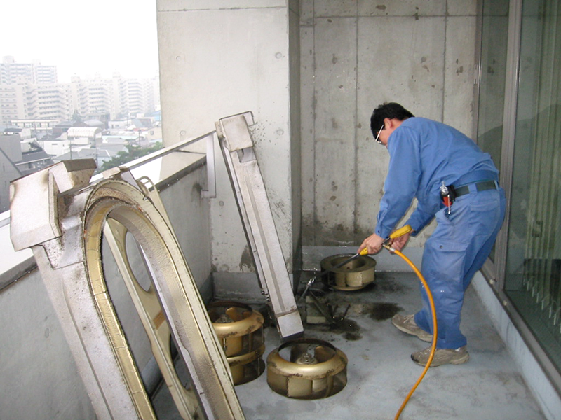 弊社では安全第一で作業を行います。経験豊富な作業員が清掃しにくい所でもきちんと作業します!